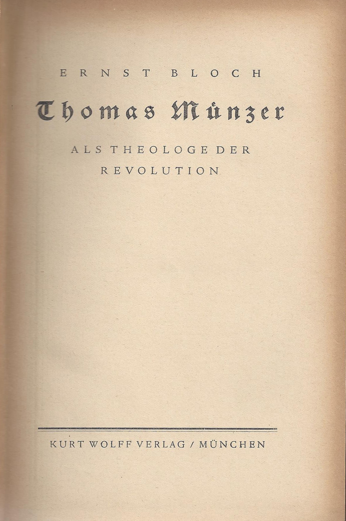 Im Sinne eines frühen Spurenlesens in der Vergangenheit, auf der Suche nach Unabgegoltenem in der Geschichte schrieb Bloch ein Buch über den Reformator, Theologen und Revolutionär aus der Zeit der Bauernkriege – den vor allem in späteren Lebensjahren gemeinhin als ‚Konterpart Luthers‘ apostrophierten Thomas Münzer.