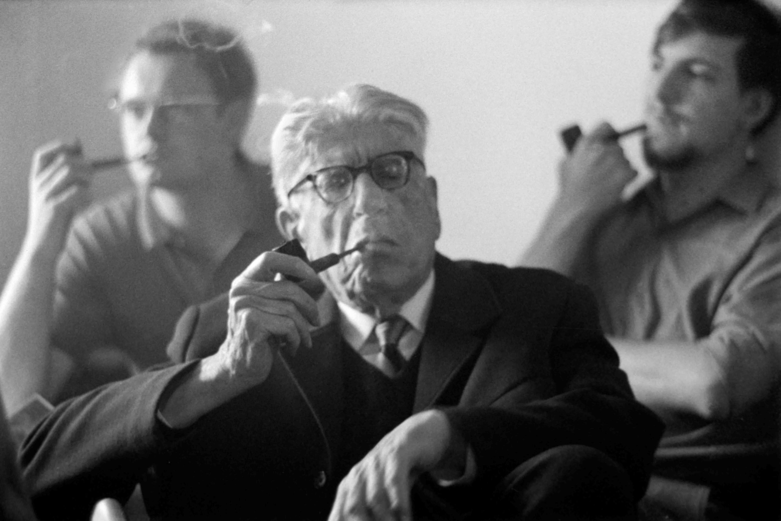 1986: Gründungsversammlung der Ernst-Bloch-Gesellschaft (EBG) in Ludwigshafen unter Schirmherrschaft Karola Blochs (Bildmitte); Burghart Schmidt (links) wird zum ersten Präsidenten der EBG gewählt